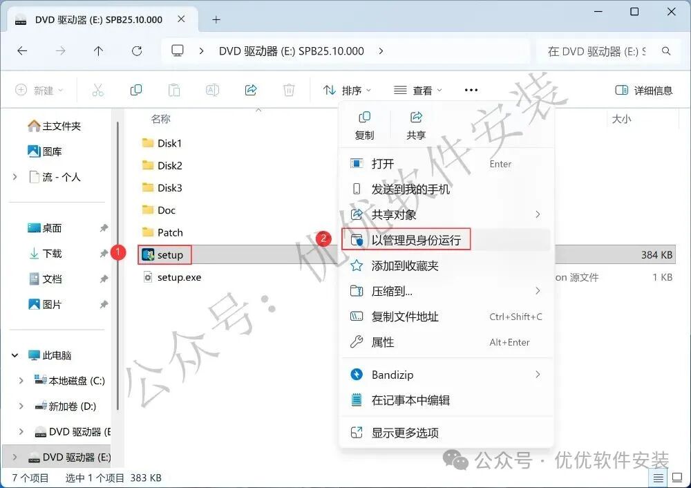 4、找到【setup】应用程序,右键选择【以管理员身份运行】它