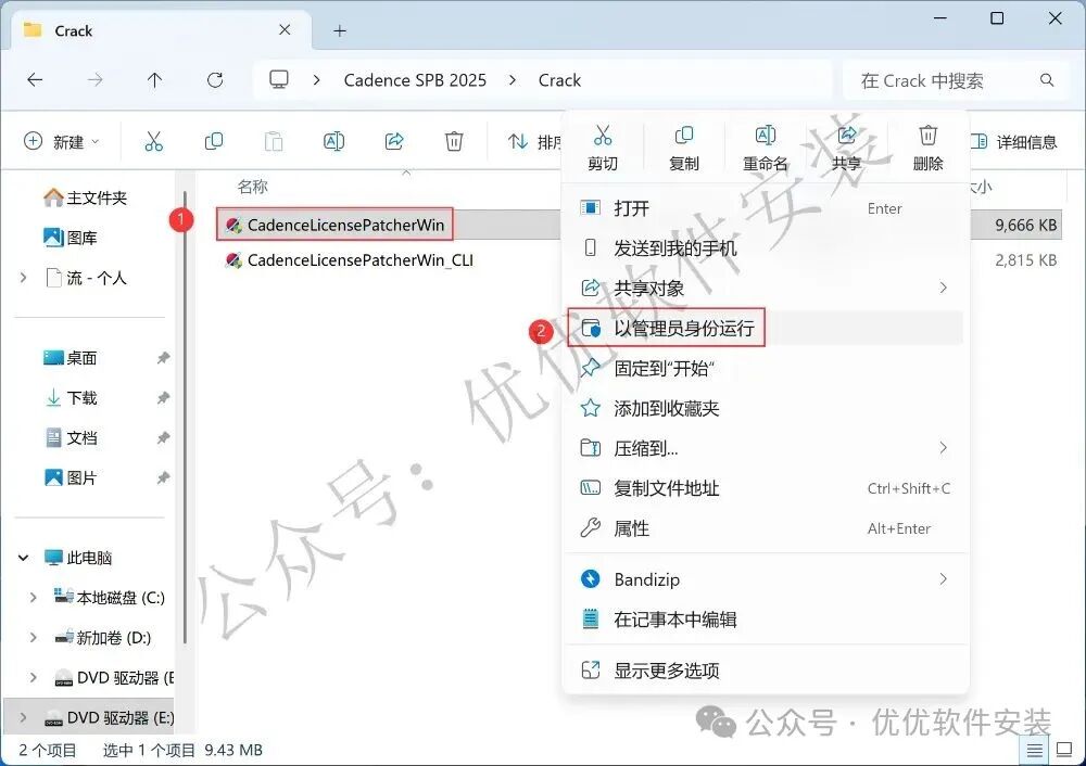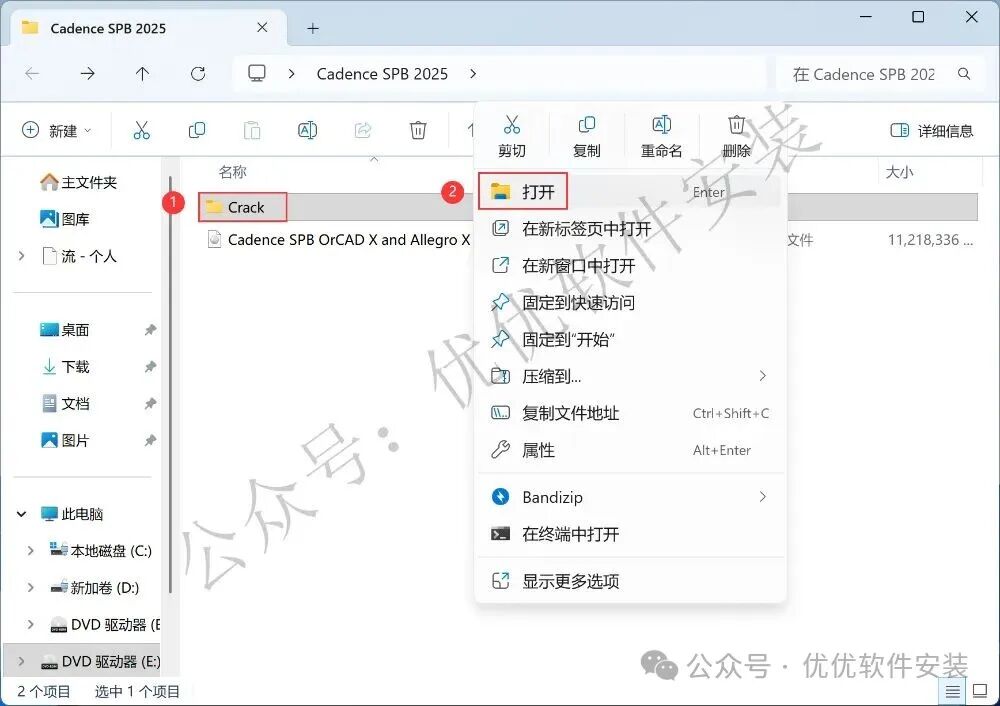 11、回到Cadence SPB 2025文件夹,找到【Crack】文件夹,右键【打开】它
