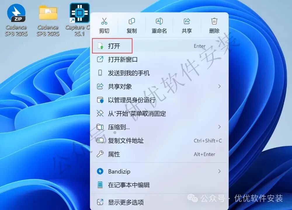 19、右键桌面上的【Capture CIS 2025软件图标】,点击【打开】