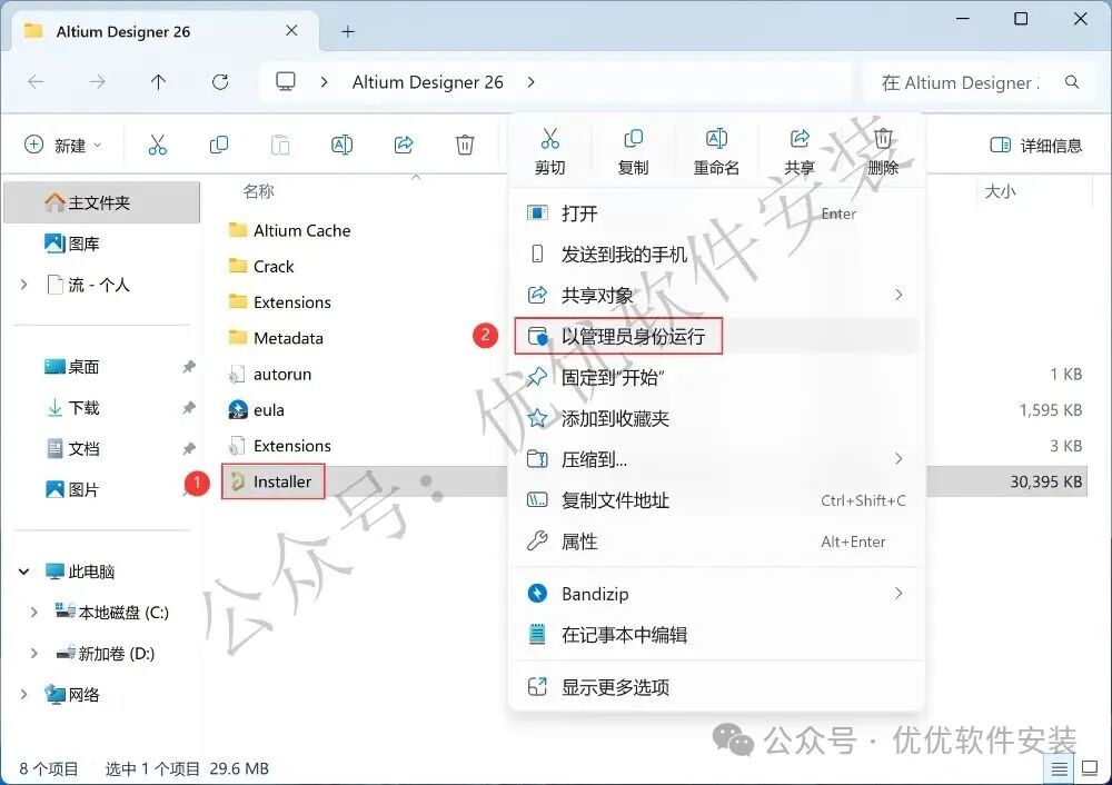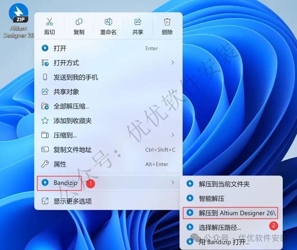 1、下载Altium Designer 26软件安装包到电脑上,右键选择【解压到Altium Designer 26\】