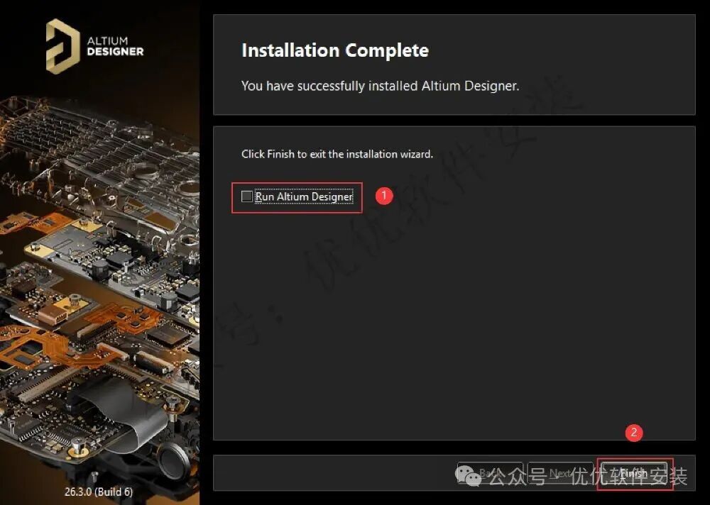 11、不勾选【Run Altium Designer】,再点击【Finish】