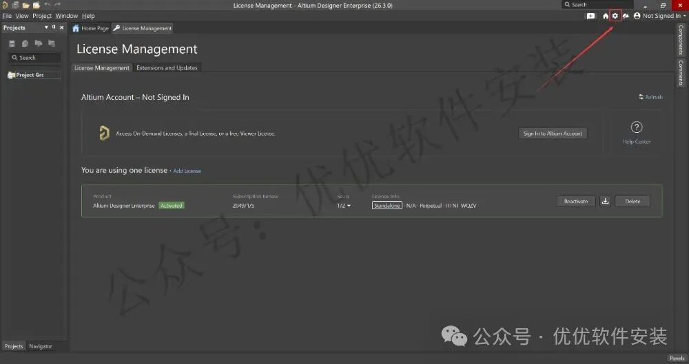 18、进入软件界面,点击【下拉图标】,再点击【Add Standalone License File】