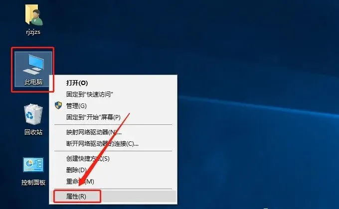 12.在桌面上选中【此电脑】,鼠标右击选择【属性】。