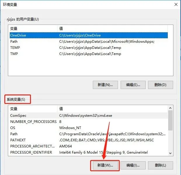 15.在【系统变量】下面点击【新建】。