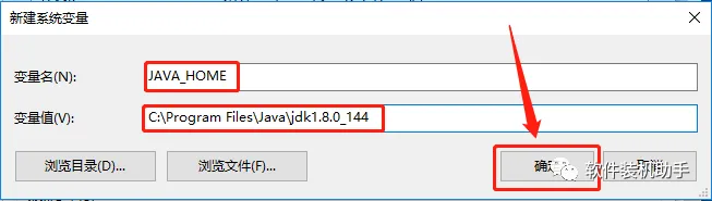 ps:这个变量值就是JDK的安装路径,如果是32位的JDK则输入【C:\Program Files (x86)\Java\jdk1.8.0_144】。