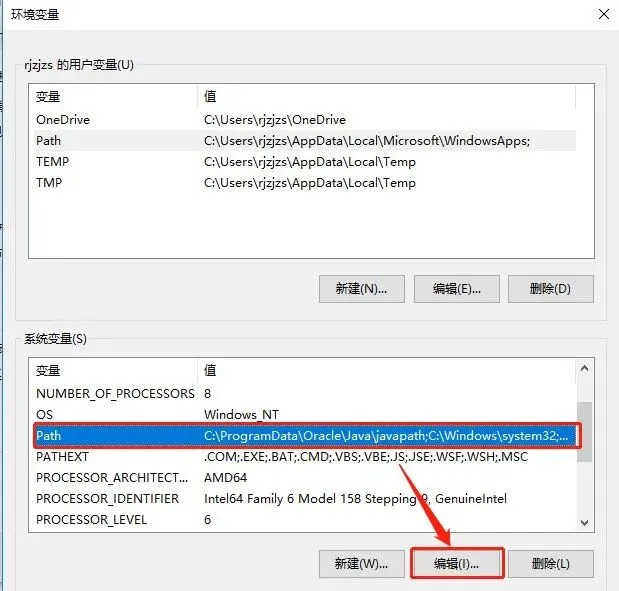 19.选中【Path】变量,点击【编辑】。