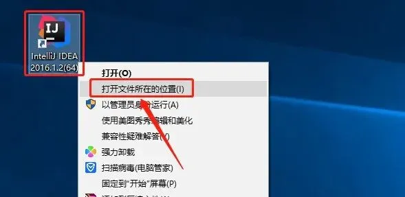 9.在桌面找到【IntelliJ IDEA 2016.1.2】图标,鼠标右击选择【打开文件所在的位置】。