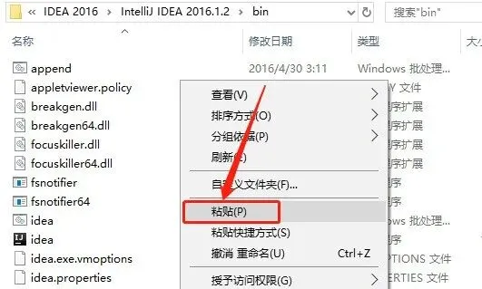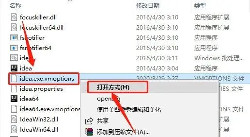 11.在该目录下面找到【idea.exe.vmoptions】文件,鼠标右击选择【打开方式】。