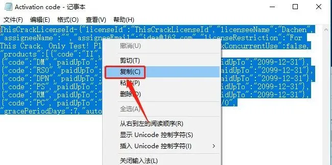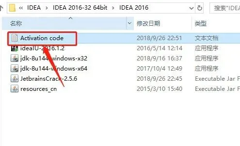 25.返回到开头解压的【IDEA 2016】文件夹,打开【Activation code】文本。
