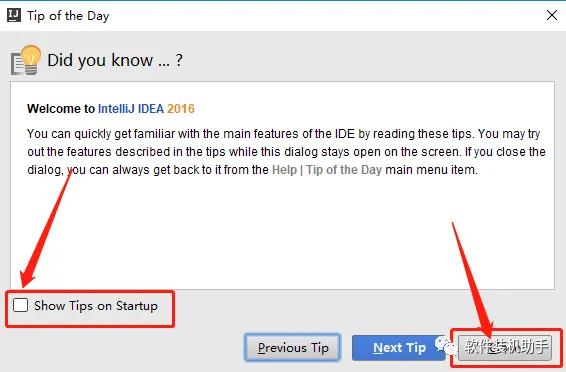 35.取消勾选【Show Tips on Startup】,然后点击【Close】。