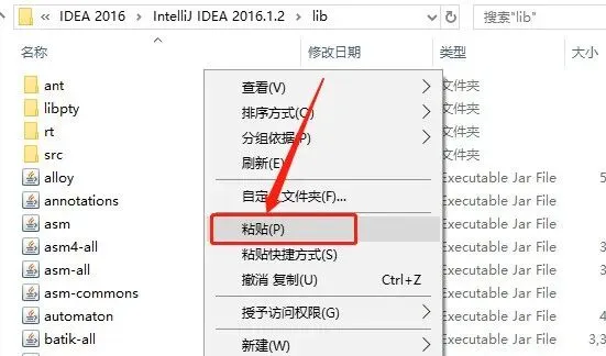 42.在打开的【lib】文件夹空白处,鼠标右击选择【粘贴】。