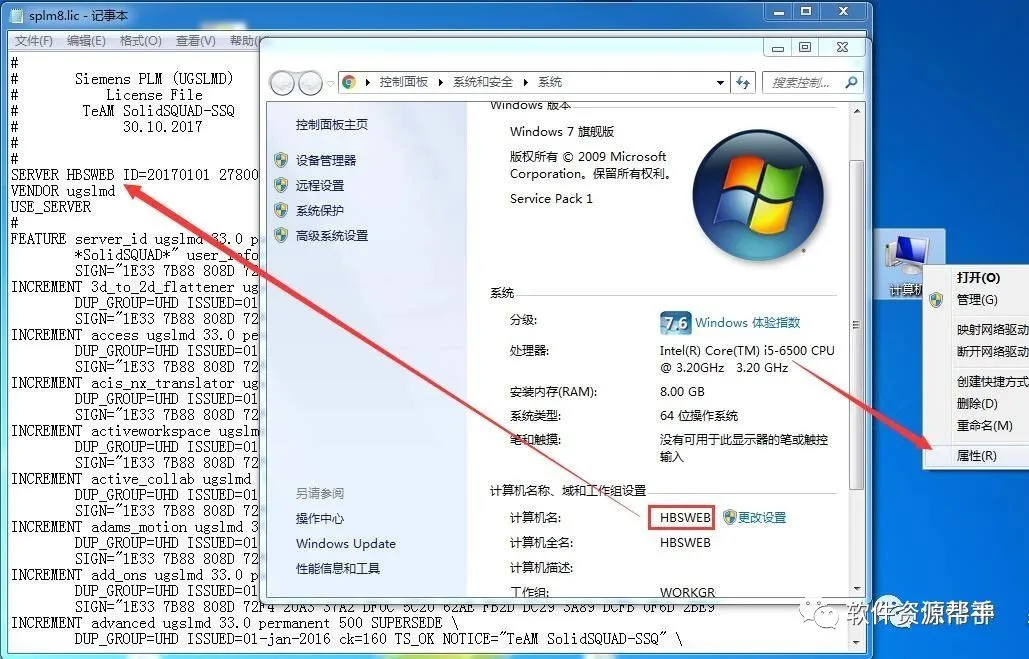 12.在splm8中把 this-host 替换成你的计算机名,保存并退出记事本;用户的计算机名可在计算机属性中查看