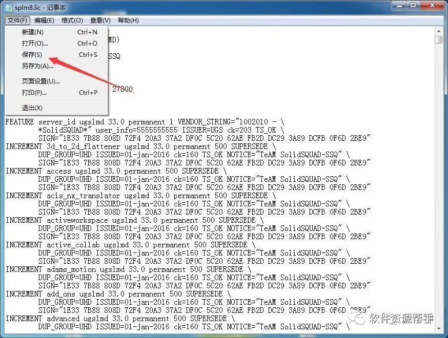 11.返回安装包UG12\破解文件,找到splm8.lic,以记事本的方式打开