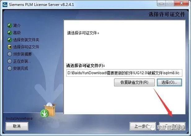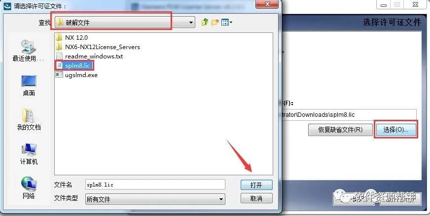 14.点击选择,找到刚刚修改的splm8.lic文件,点击打