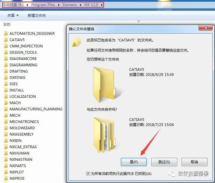35.粘贴刚刚复制的文件到E:\Program Files\Siemens\NX 12.0目录中(参考第27步安装路径),选择是