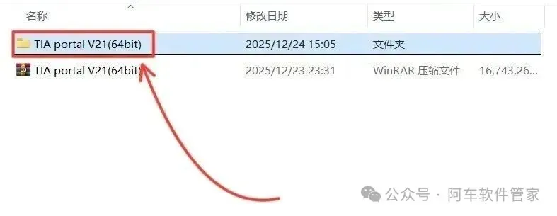 1.鼠标右击【TIA portal V21(64bit)】压缩包,选择【解压到 TIA portal V21 (64bit)】。