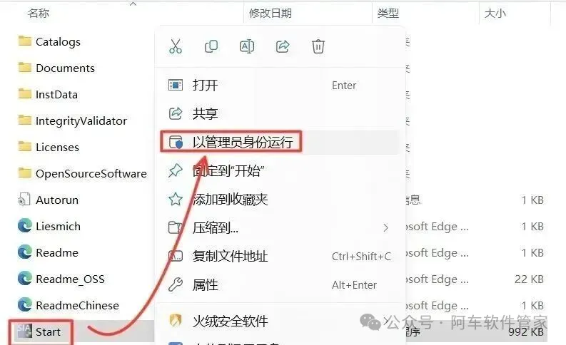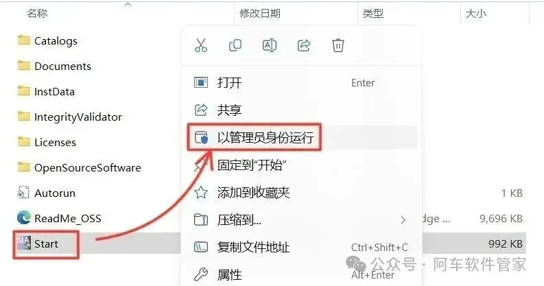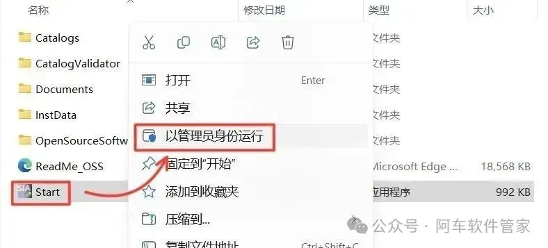 7.鼠标右击【Start】,选择【以管理员身份运行】。