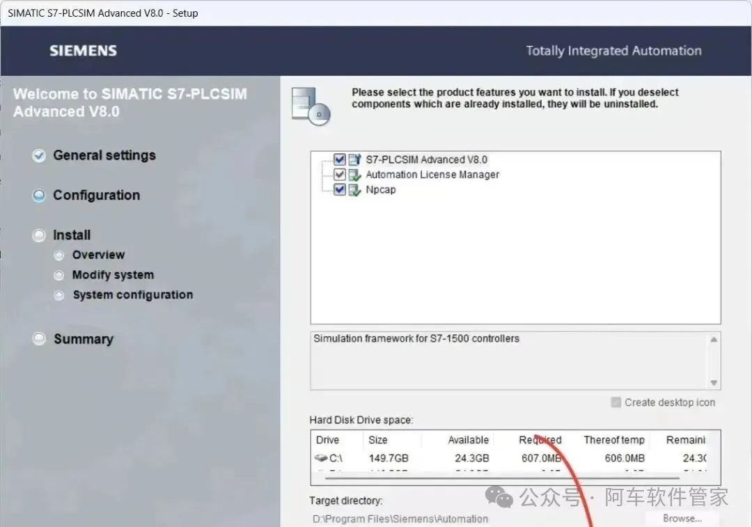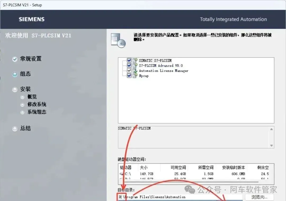 若您不需要使用产品【SIMATIC_S7-PLCSIM_Advanced_V8】和【STARTDRIVE_BASIC_ADVANCED_V21】,可直接从“步骤52”开始后续操作。