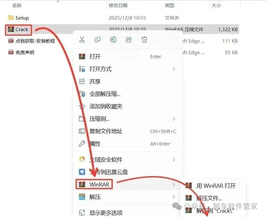 52.打开安装包解压后的【TIA portal V21(64bit)】文件夹,鼠标右击【Crack】压缩包,选择【解压到当前文件夹】。(解压安装包前请关闭电脑里的杀毒软件和防火墙)