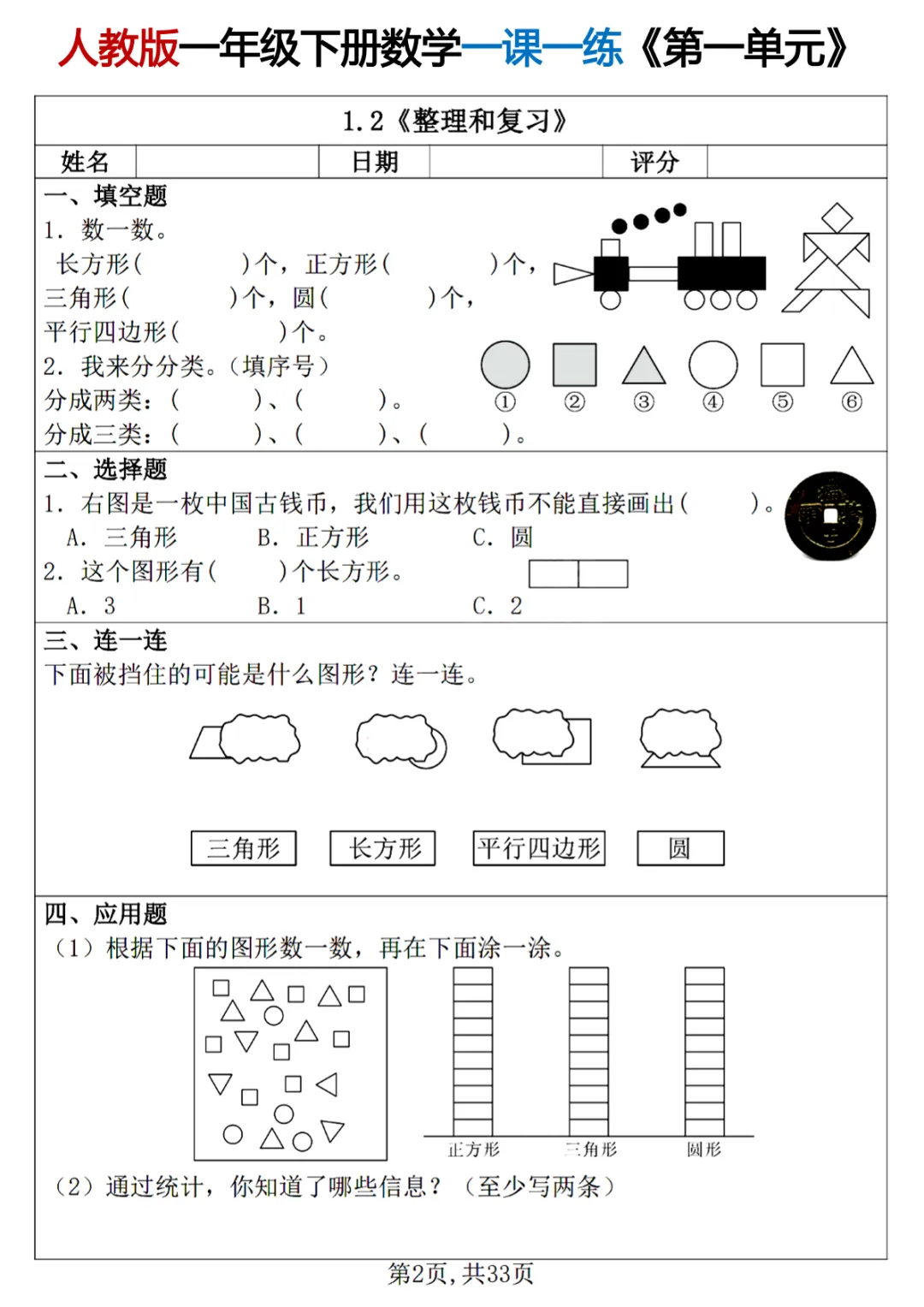一年级(下)数学 26春一课一练《人教版》