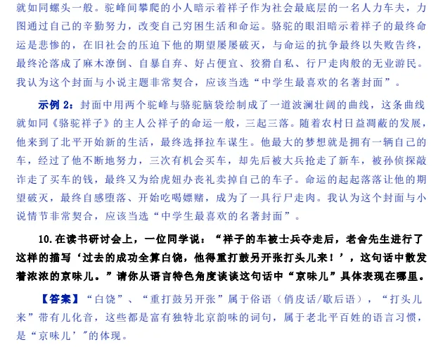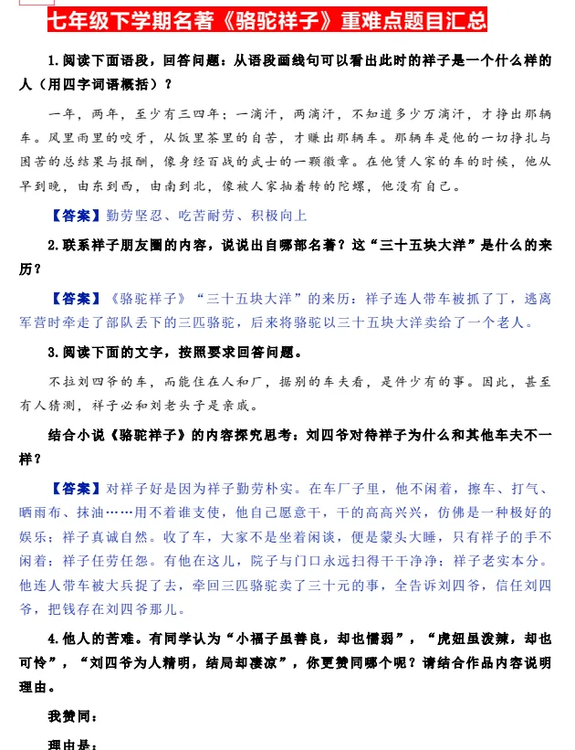 >(免费下载)《骆驼祥子》重难点题目汇总
