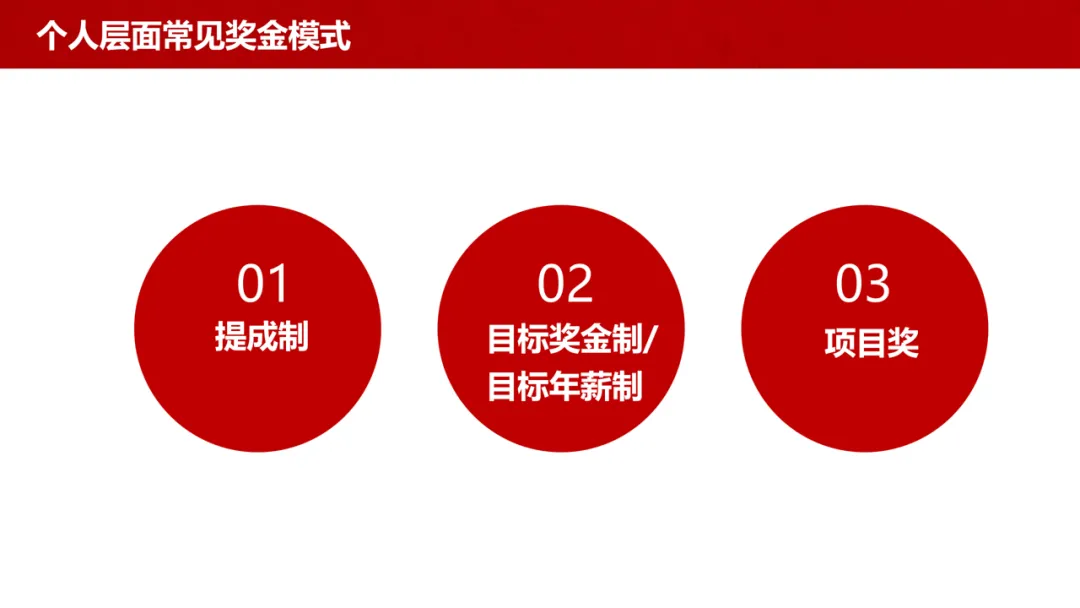 个人层面常见模式:包括提成制、目标奖金制 / 目标年薪制、项目奖三类,多聚焦个人短期业绩,易忽视团队协同与长期价值。