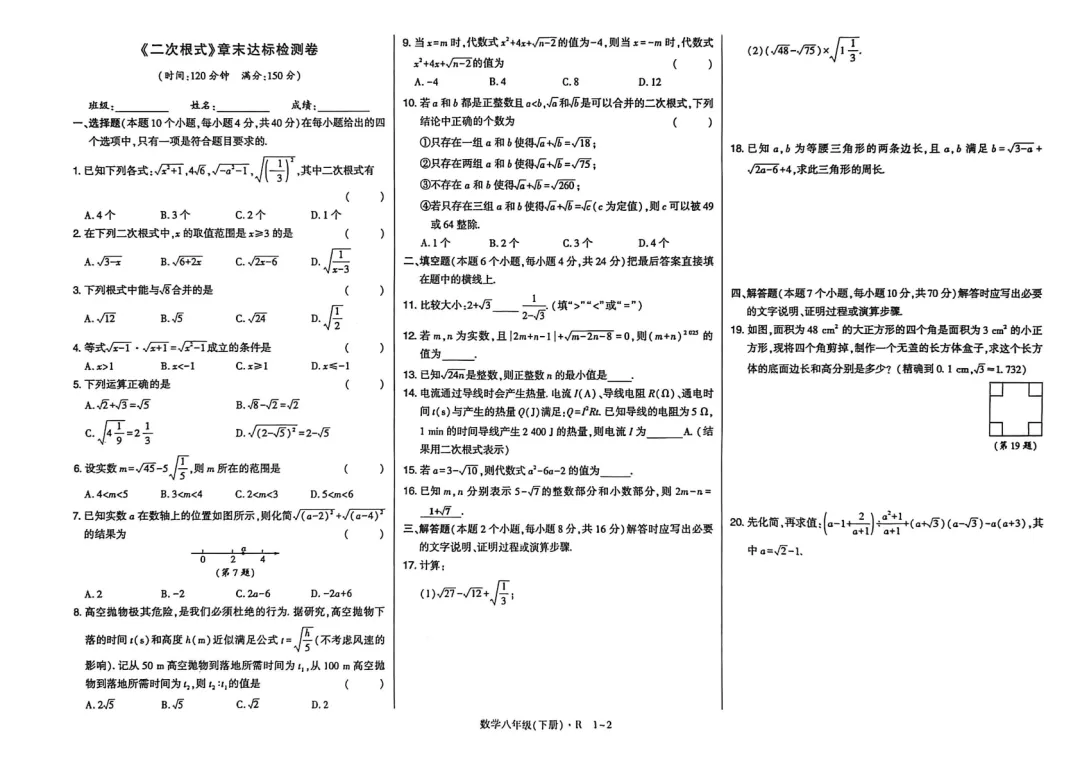 八年级(下)数学 《二次根式》章末达标检测卷