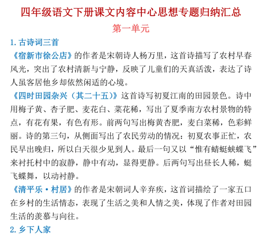 本文分享:小学四年级下语文知识重点汇总
