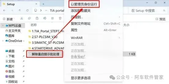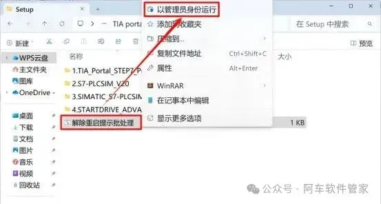 18.选中【解除重启提示批处理】右键【以管理员身份运行】