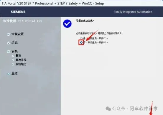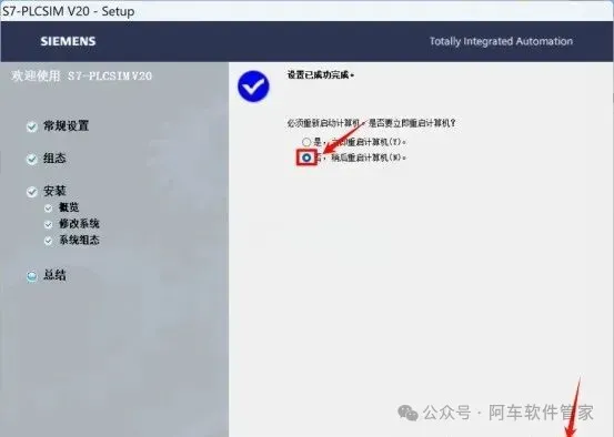 17.选择【否,稍后重启计算机】;点击【关闭】