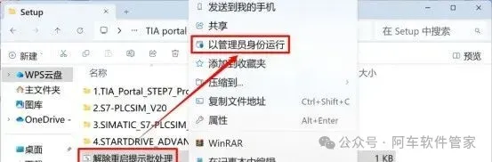 3.选中【解除重启提示批处理】右键【以管理员身份运行】