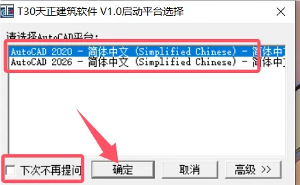 注:如果是多个CAD版本用的话,这里建议不勾选,这样好选择版本