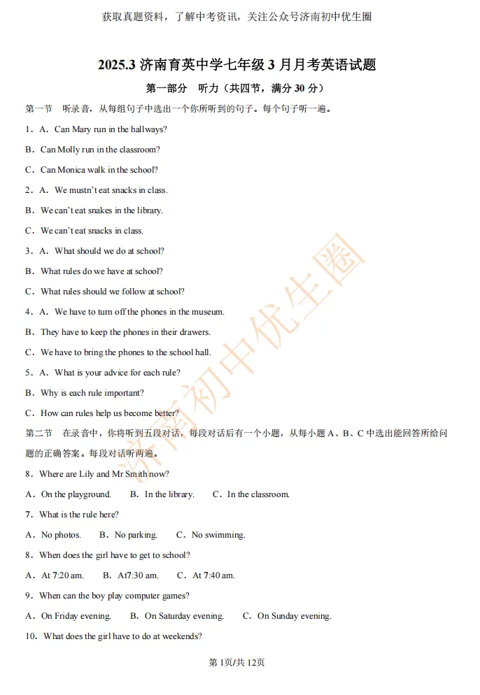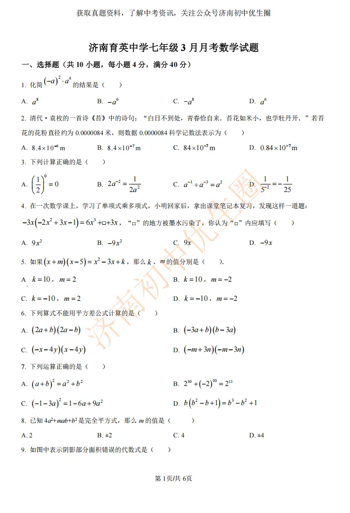今天小初老师给大家整理育英中学3月七下月考试试题,PDF高清版,可以扫描下方二维码免费获取!