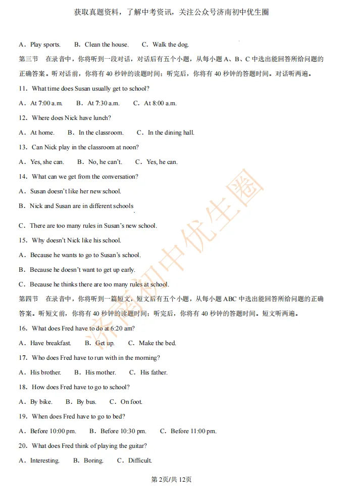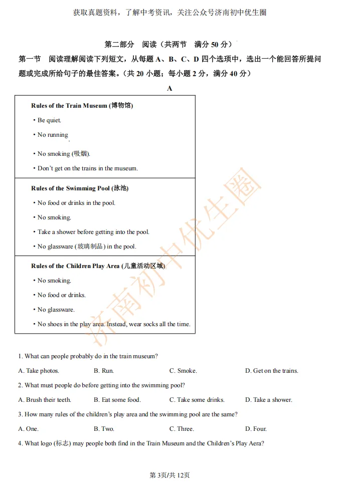 一模时间定了!24年济南初三一模真题+答案解析免费领取!