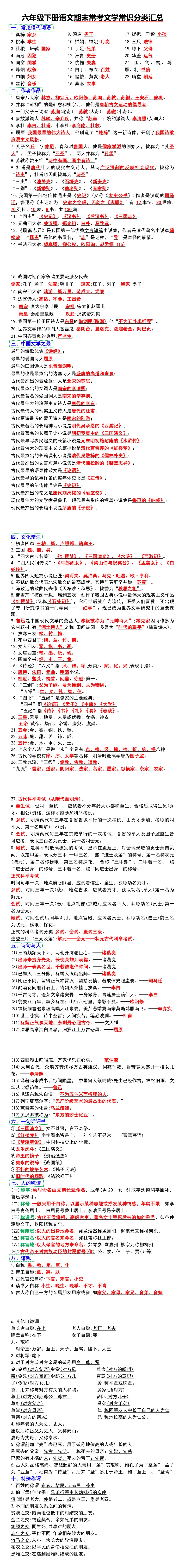 大家好,这里是满分派~同学们,今天为大家整理了的六年级下册语文期末常考文学常识,同学们要多练习哦,家长们也可以督促起来哦。