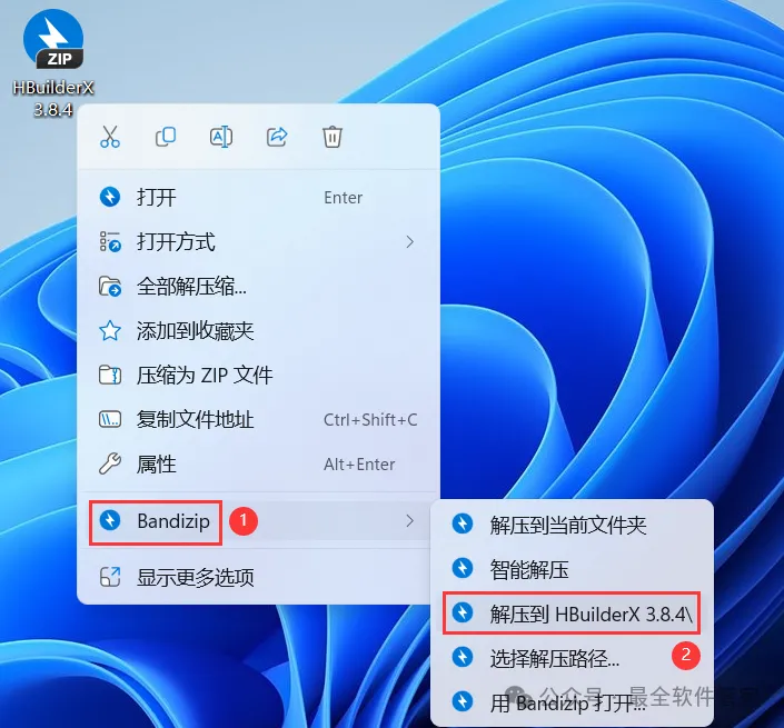 1、下载HBuilderX 3.8.4软件安装包到电脑上,右键选择【解压到HBuilderX 3.8.4\】