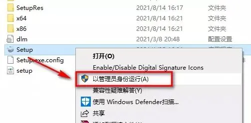 3.找到并选中Setup,鼠标右键选择“以管理员身份运行”