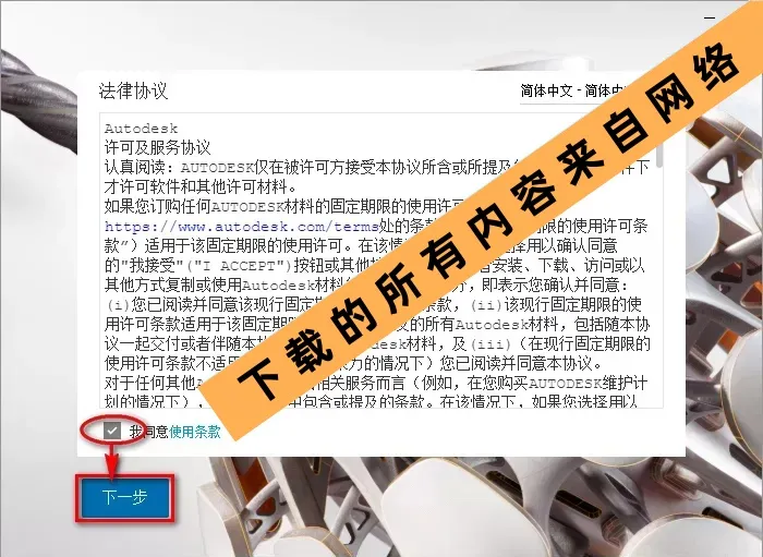 4.勾选我同意使用条款,点击“下一步”