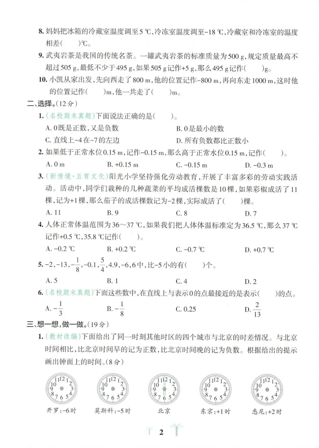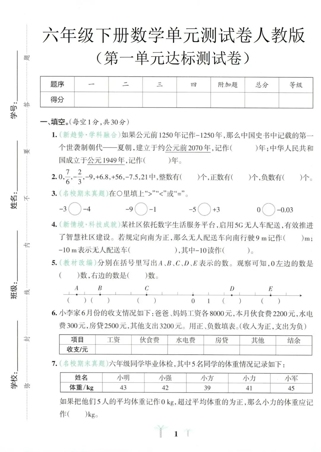 【免费下载】六年级(下)数学 第一单元达标测试卷《人教版》,PDF电子版,共5页,可打印