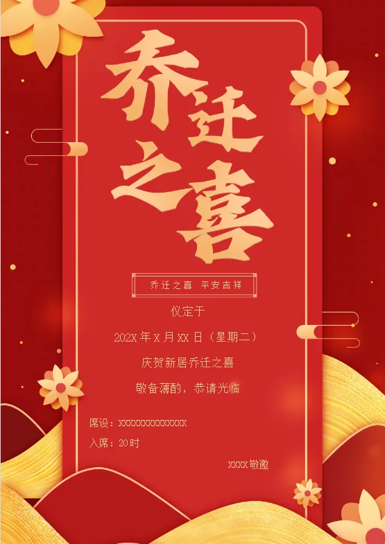 还在为写乔迁邀请函犯难?自己设计没审美,手写又麻烦,发消息显得不够正式,想体面邀请亲友却找不到合适模板?