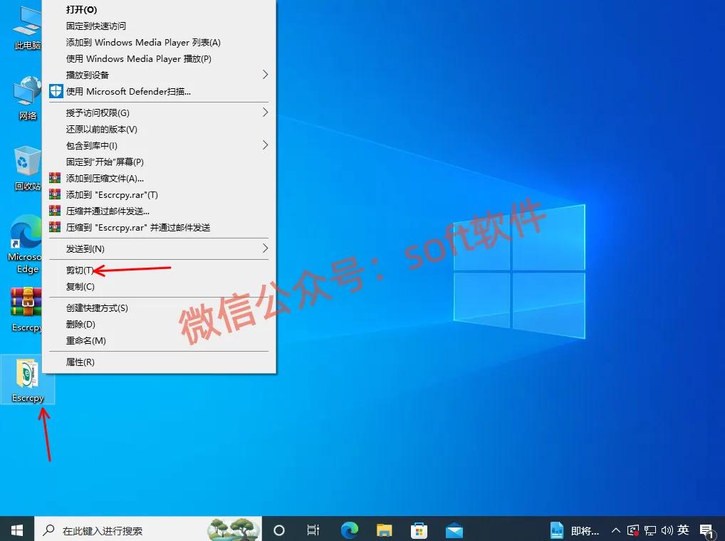 2,鼠标右键解压生成的Escrcpy文件夹,选择剪切
