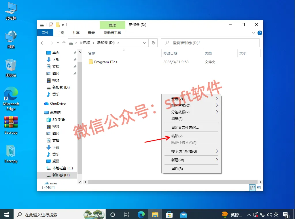 3,打开想安装的位置,文件夹空白处鼠标右键选择粘贴