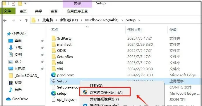 第四步:选中【setup】安装程序,右击【以管理员身份运行】。
