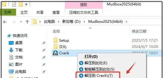 第九步:返回第二步解压的文件夹,找到【Crack】,右击解压到【Crack】,并打开解压的【Crack】文件夹。(此处一定注意杀毒软件的提示。)