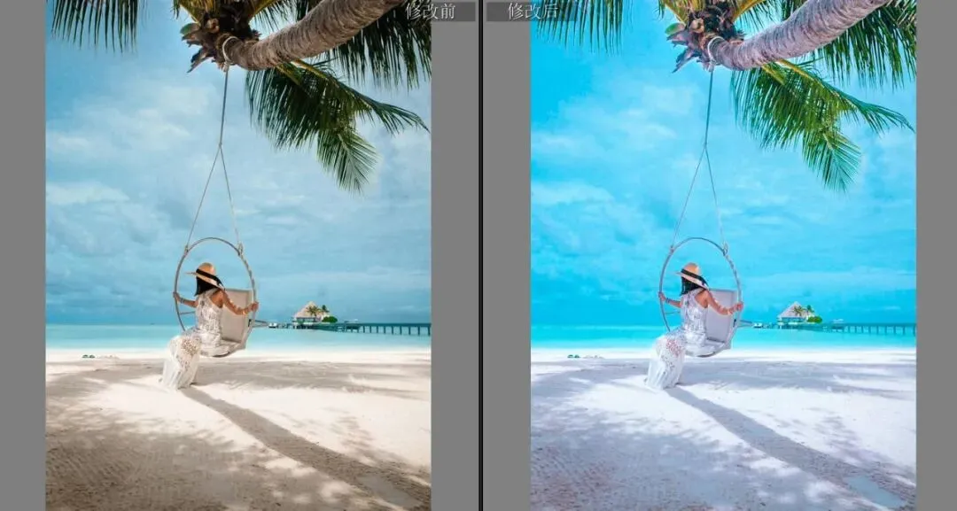 获取方法,关注后私信回复【水蓝色海滩色调风格】即可获取下载地址。