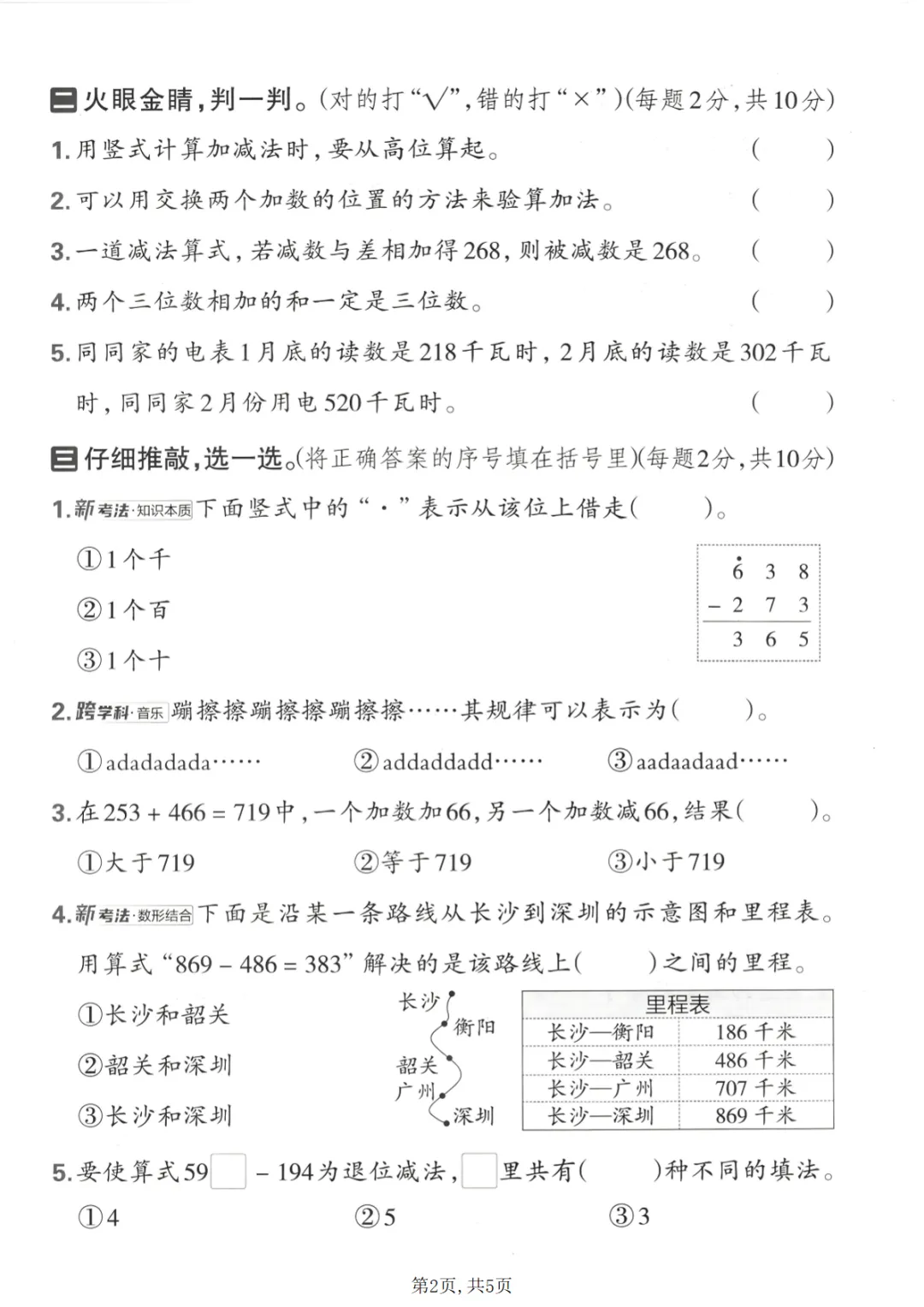 【免费下载】二年级(下)数学 第一单元质量检测卷《西师版》,PDF电子版,可打印