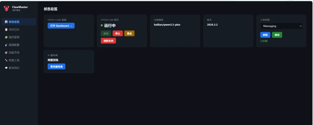 安装完成会自动启动 ClawMaster 龙虾管家,将来龙虾管家将是你管理和养殖龙虾的得力助手!