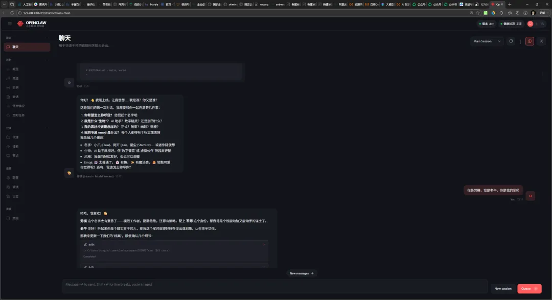 配置完成后,可以通过OpenClaw 面板中的打开Dashboard按钮打开OpenClaw。