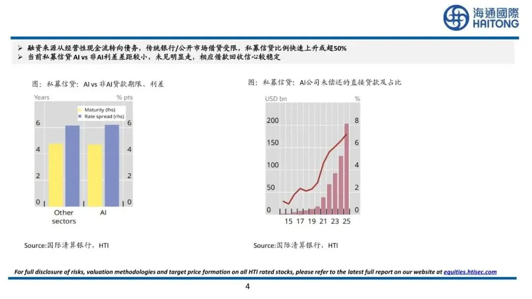 当前私募信贷 AI vs 非AI利差差距较小,未见明显走,相应借款回收信心较稳定