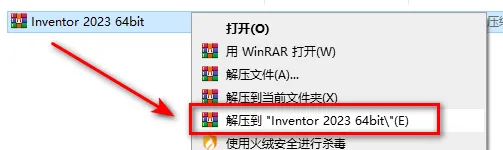 1.鼠标右键解压“Inventor 2023”